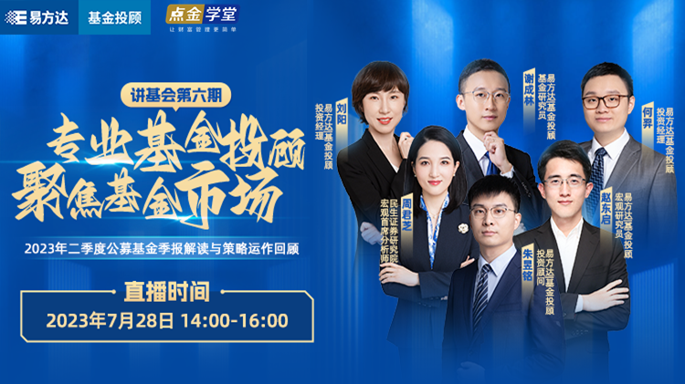 直播时间:2023年7月28日(周五)14:00;直播看点:1、全面回顾2023年二季度宏观市场、行业板块情况;2、解析全市场公募基金2023年二季报,探索公募基金配置变化;3、投资经理回顾2023年二季度策略运作思路